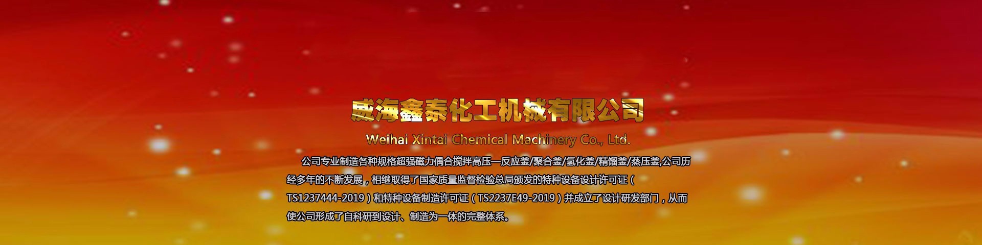 威海鑫泰化工機械有限公司擁有專業從事設備設計、開發、生產的技術人員和管理人才,經過多年發展,已建立較完善的生產流程和質量管理體系。我們憑借雄厚的技術力量、精確的檢測手段、高品質的產品、完善的售后服務、信譽好吸引了大批客戶,以滿足客戶需求為出發點,始終堅持以質量為生命的宗旨.......